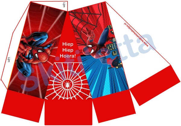 Perfect voor kleine superhelden die dol zijn op actie en avontuur. Deze digitale taart in Spider-Man-thema is eenvoudig zelf te printen en in elkaar te zetten – klaar om gevuld te worden met lekkere of leuke traktaties!